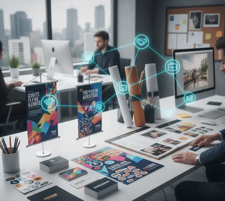 - Impressão Profissional: Cartões, flyers, banners, adesivos e muito mais com acabamento impecável.
